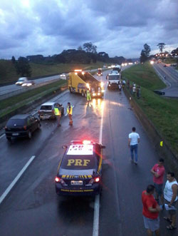 A pista ficou interditada até às 18h30. A fila chegou a seis quilômetros, aproximadamente.