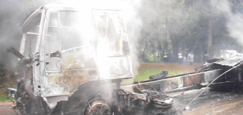 Os dois veículos bateram de frente depois que o motorista do carro, que seguia sentido Curitiba, perdeu o controle em uma curva e passou para a pista contrária. Ele morreu na hora. Com o impacto, os dois veículos racharam ao meio e o caminhão que estava carregado com papelão e pegou fogo. O condutor teve ferimentos leves.