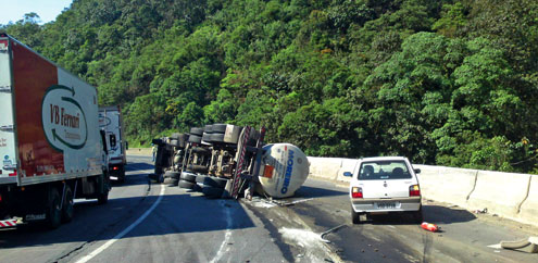 O veículo tinha placas da Argentina e espalhou pela pista parte de uma carga de 27 toneladas de ácido fosfórico clarificado. Formaram-se aproximadamente 10 km de fila na pista.