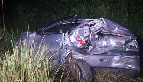 | A pancada foi tão violenta que os dois veículos foram parar fora da pista. Foto:Colaboração/Rádio Difusora |