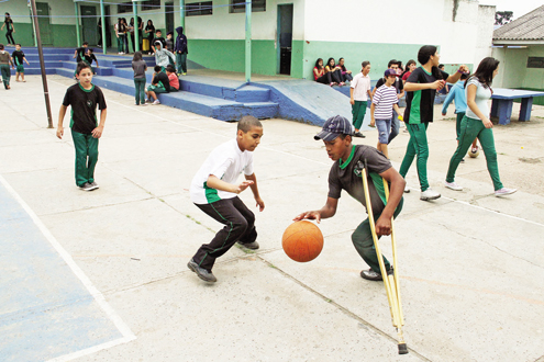 Foi cruzando o pátio do Colégio Estadual Anita Canet, em Fazenda Rio Grande , durante o intervalo entre as aulas, que a equipe do Caçadores de Notícias se deparou com uma partida de basquete muito animada e, em meio aos jogadores, o estudante Matheus Tostes dos Santos, 14 anos, comandando o jogo. Somente depois de algum tempo que a muleta usada pelo garoto foi notada, tamanha a habilidade e confiança dele.