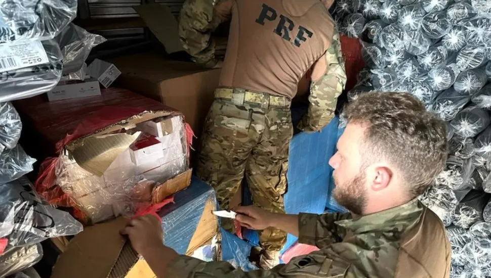 As cerca de 100 caixas com os produtos estavam escondidas entre bobinas de tecido TNT, transportadas em um caminhão baú, com placas de Foz do Iguaçu. Conforme informações da PRF, os aparelhos estavam bem escondidos.