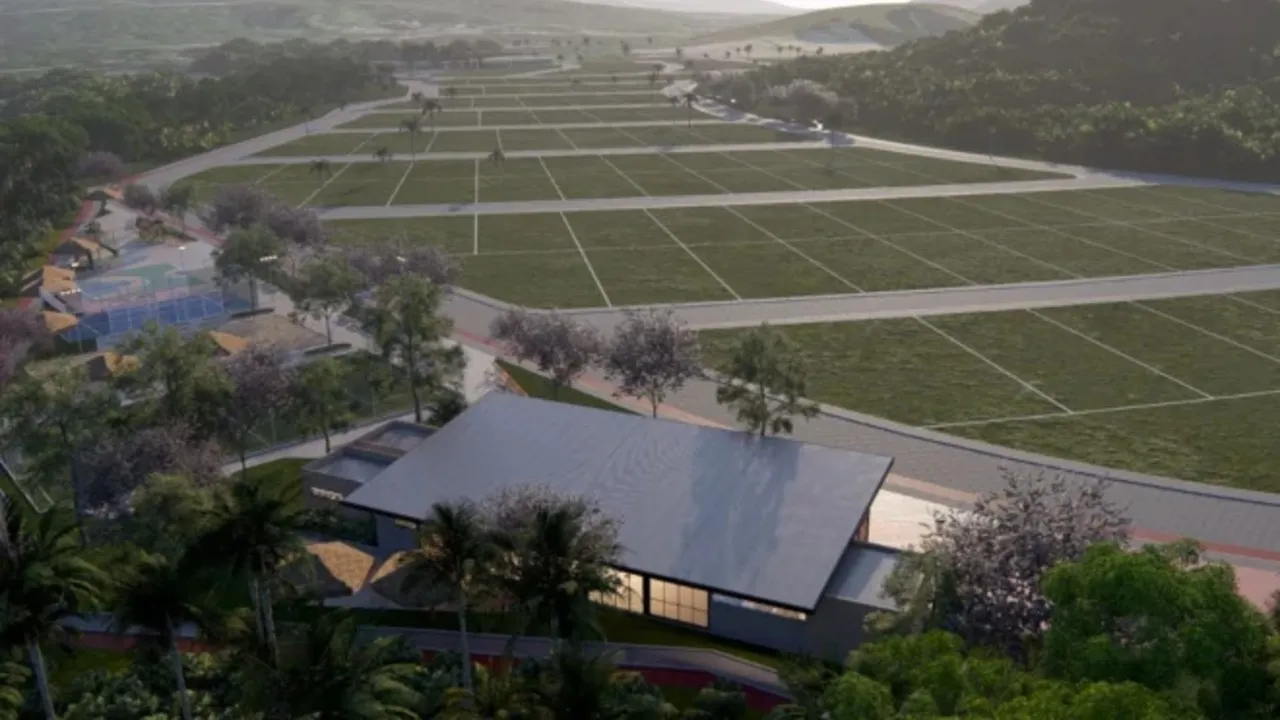 A área comum soma aproximadamente 9 mil metros quadrados. O espaço inclui ciclovias, trilhas de caminhada e quadras poliesportivas. O projeto também prevê hotel e restaurante com vista 360 graus para a serra. As obras de terraplanagem e saneamento já começaram.