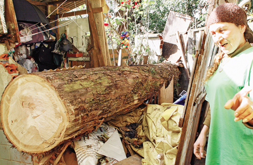 Um mês após a queda do eucalipto que dividiu ao meio a casa da catadora de material reciclável Maria Ivanir Gonçalves, a enorme árvore ainda permanece no local, tornando a vida desta mulher de 64 anos ainda mais difícil do que já era.