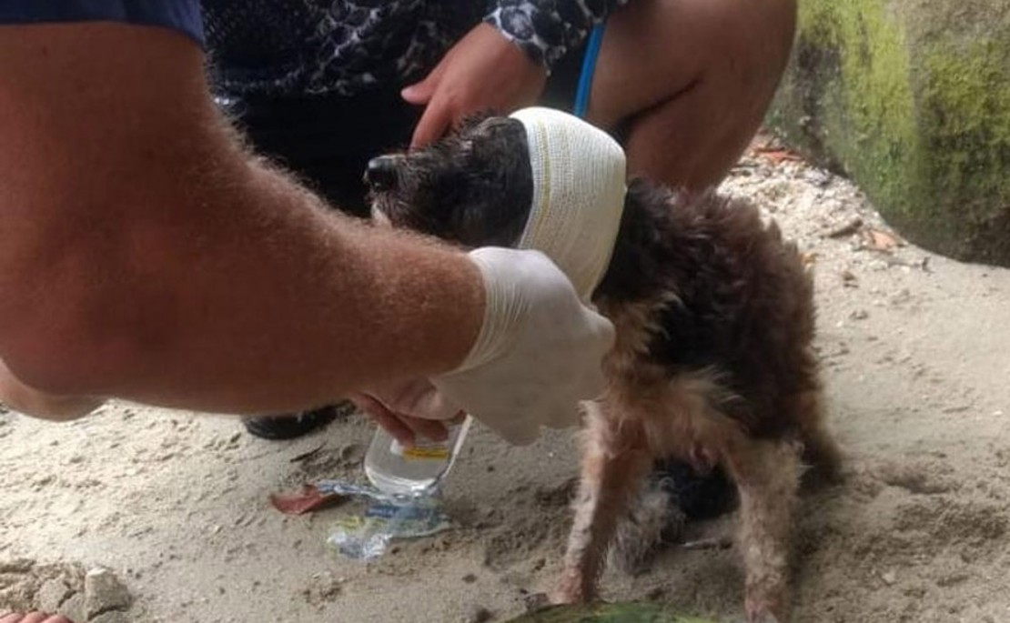 Na ilha, o animal estava com feridas abertas pelo corpo todo, causadas pelas bicadas dos urubus. Os guardas e os caiaqueiros fizeram curativos antes de transportá-lo para o continente. O cachorro foi encaminhado para o departamento de veterinária da Secretaria Municipal de Meio Ambiente, onde os médicos veterinários detectaram também outras lesões e doenças. “Ele apresenta uma série de lesões. É um caso típico de maus-tratos e abandono, que é com o que mais trabalhamos aqui na secretaria”, conta a diretora do departamento, Elen Cristine Soares.