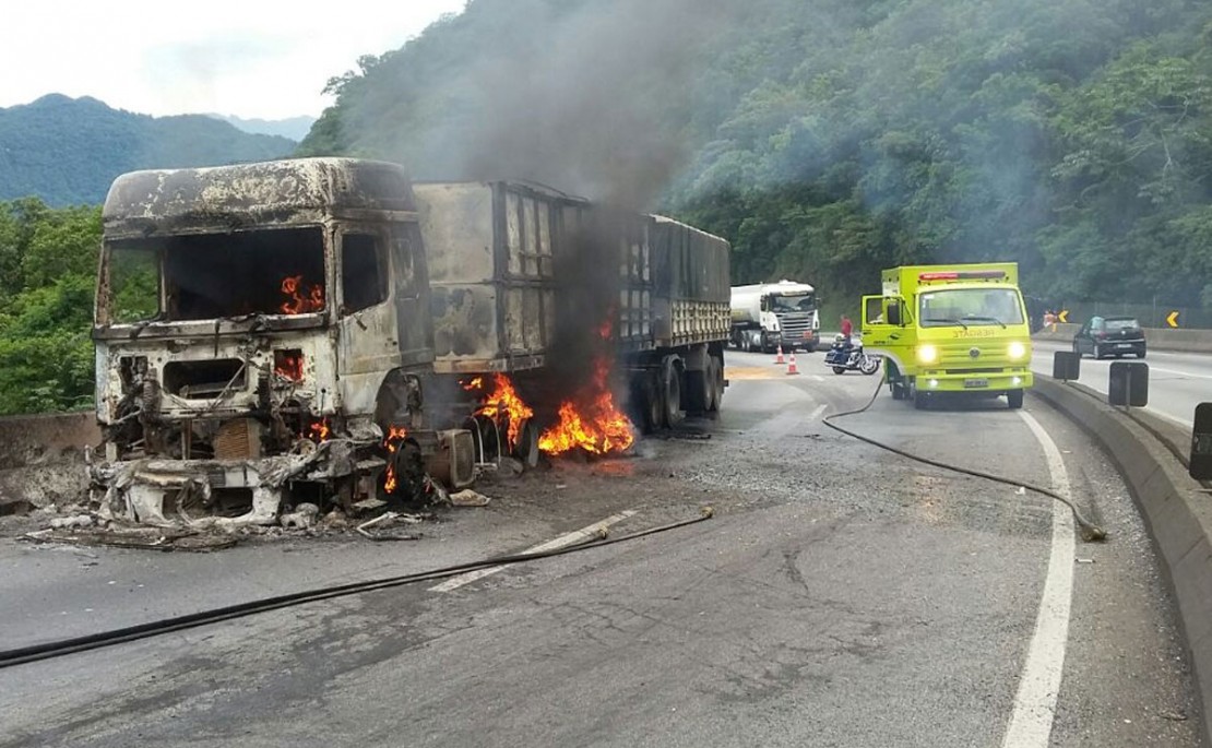 As causas do incêndio ainda não foram apuradas. O caminhão. um graneleiro, parou bem na subida da serra, já em Morretes, no Litoral do Paraná.