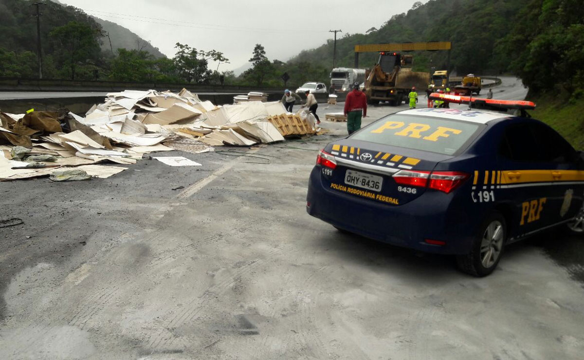 Segundo a Polícia Rodoviária Federal (PRF), logo após o tombamento, apenas uma das três faixas sentido Santa Catarina ficou liberada. O tombamento aconteceu por volta das 7h50 e o congestionamento superou os oito quilômetros.