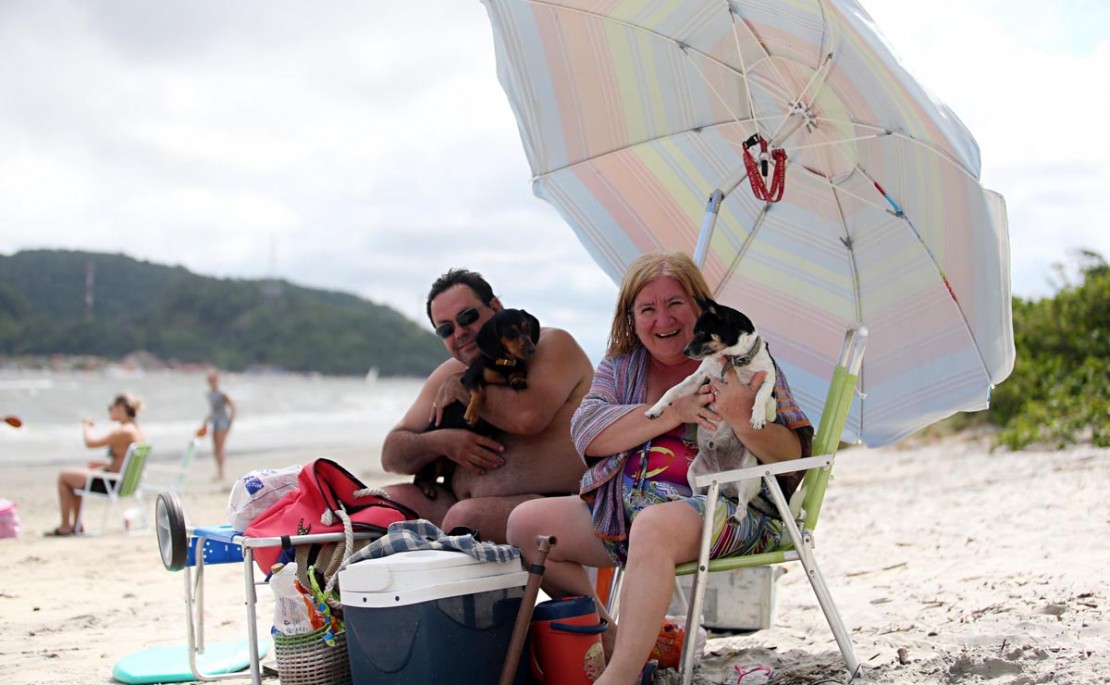 A cada poucos metros, há pets de todos os tamanhos e raças dividindo a areia com os humanos no litoral do Paraná. “Ele fica só no meu colo, não deixo ele nem chegar perto do mar”, justifica-se a auxiliar administrativa Luiza Falkowski, 58, enquanto segura Garu nos braços, um yorkshire de quatro anos.