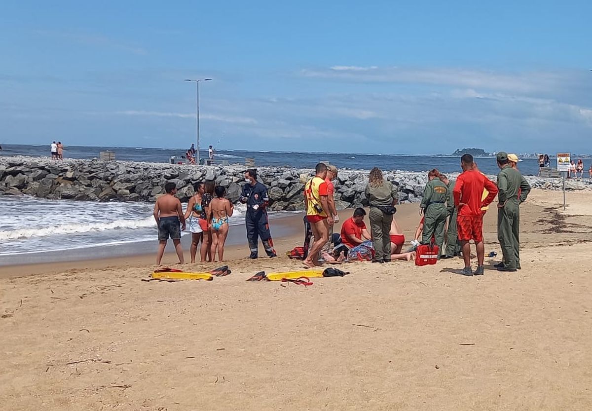 Segundo os bombeiros, são duas vítimas masculinas, de 13 e 15 anos, que apresentaram afogamento grau 2 e foram encaminhadas para atendimento hospitalar. A terceira vítima, masculina de 49 anos, foi retirada com afogamento grau 6 (gravíssimo), em parada cardiorrespiratória. Após aproximadamente uma hora de manobras de ressuscitação, o homem foi encaminhado BPMOA ao Hospital Regional do Litoral.