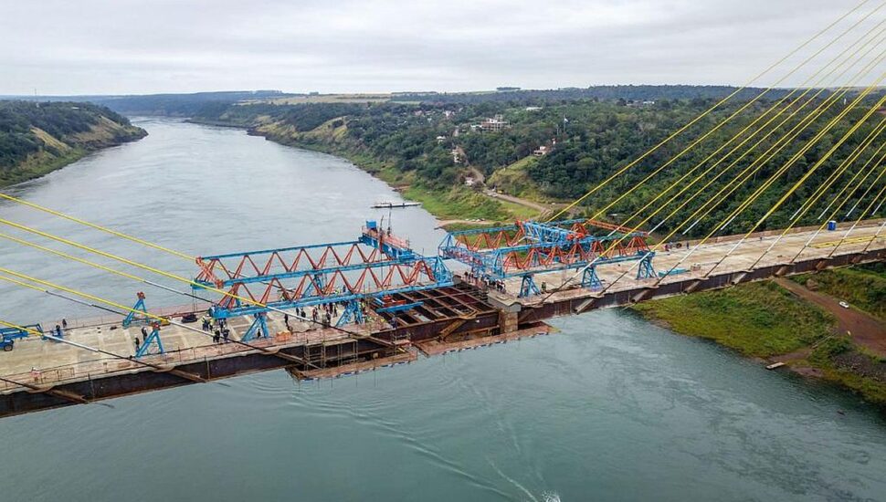 A instalação da última aduela (peça de metal usada na estrutura da ponte) para conectar as duas margens da Ponte da Integração entre Brasil e Paraguai foi realizada nesta quarta-feira (17), conectando de maneira definitiva os lados da estrutura. A Ponte Internacional da Integração vai ligar Foz do Iguaçu, no Paraná, à cidade paraguaia de Presidente Franco, e pretende desafogar o tráfego da Ponte da Amizade.