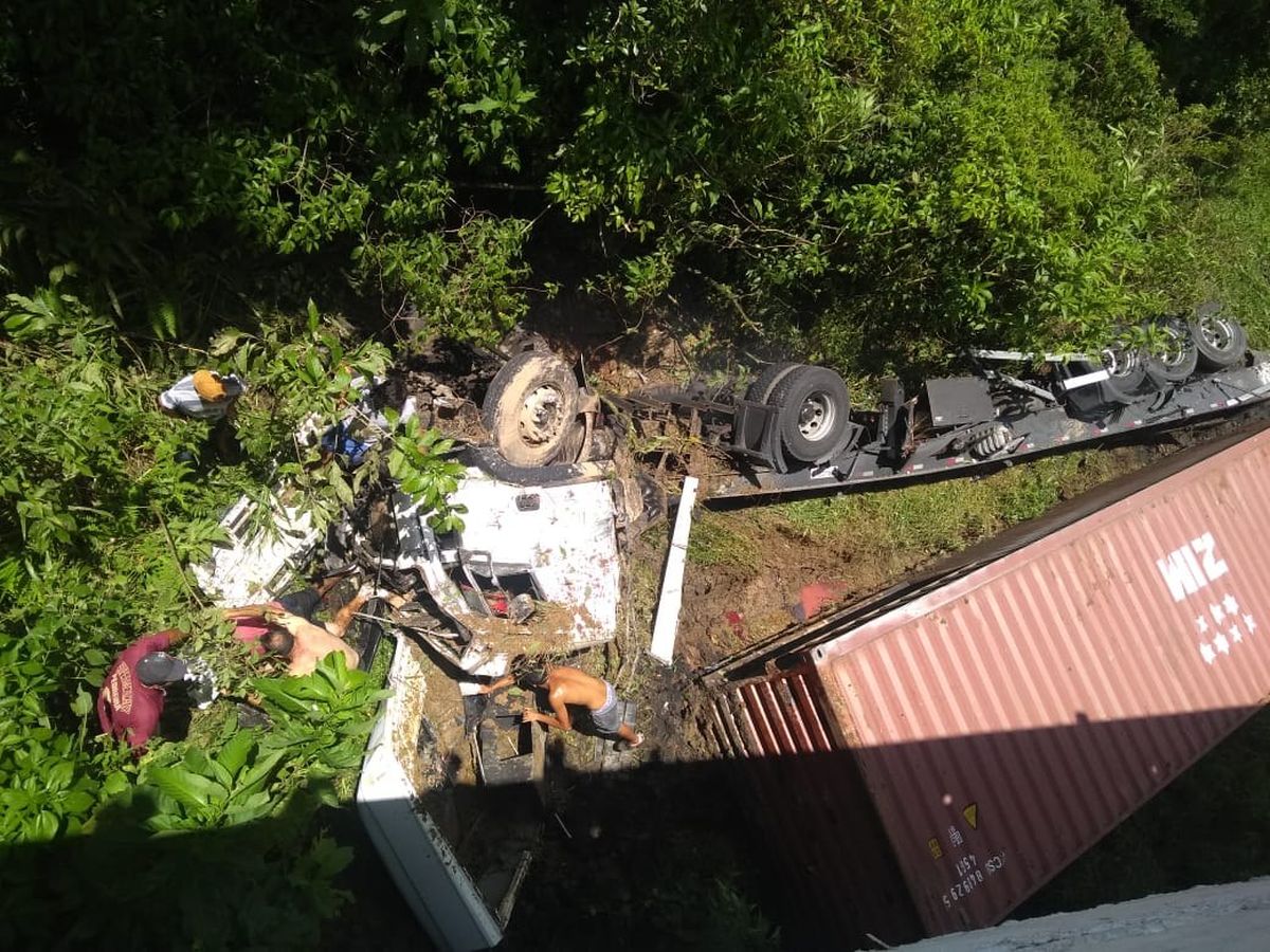 Um caminhão carregado com um container caiu de uma ponte na BR-116, na via sentido São Paulo, em Campina Grande do Sul, na Região Metropolitana de Curitiba. Segundo informações da Polícia Rodoviária Federal, o veículo perdeu o controle no km 28 da rodovia, tombou e caiu da ponte. O condutor foi encaminhado ao Hospital do Trabalhador, em estado grave.