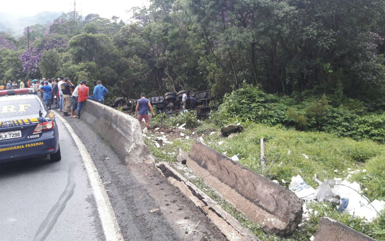 Conforme a Polícia Rodoviária Federal (PRF), era por volta das 7h30 quando o motorista do caminhão perdeu o controle da direção. Ele bateu na proteção de concreto da rodovia e caiu em um barranco. O veículo transportava hambúrgueres.