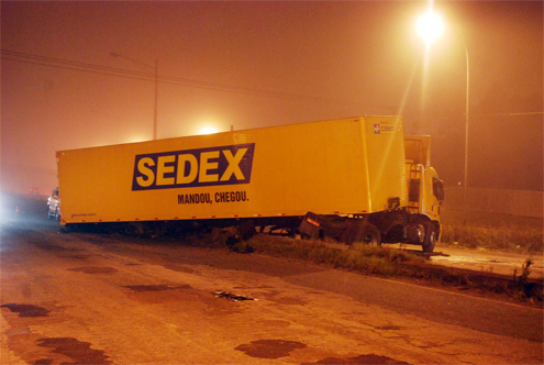 Um caminhão do Sedex, dos Correios, ficou atravessada em “L” no canteiro central da BR-277, pouco antes do viaduto do Jardim Botânico. O acidente aconteceu por volta das 5 horas da manhã deste sábado (8).