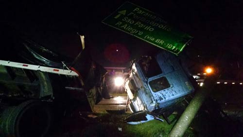De acordo com relatos de testemunhas aos policiais rodoviários federais, o caminhoneiro seguia pela pista sentido sul, quando não se sabe o porquê perdeu o controle da direção. Com a batida, a cabine ficou completamente destruída, o caminhão ficou retorcido e o rodado dianteiro chegou a desprender e foi arremessado por alguns metros.