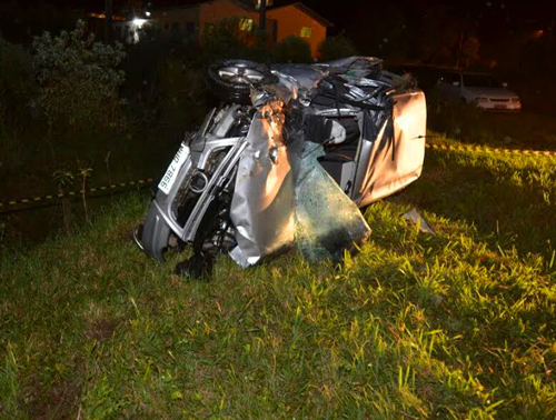 Logo atrás vinha um motorista com um Gol. O rapaz se assustou com o acidente, não conseguiu frear e capotou. O motorista do carro teve ferimentos leves e o do caminhão não foi encontrado no local do acidente.