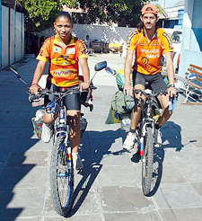 Pedalando uma média de 150 quilômetros por dia, o casal Letícia dos Santos, 23 anos, e Rodolfo de Freitas Galassi, 25 anos, quer realizar o sonho de conquistar a casa própria. Eles chegaram nesta semana em Curitiba e esperam sensibilizar empresários que queiram ajudar a dupla.