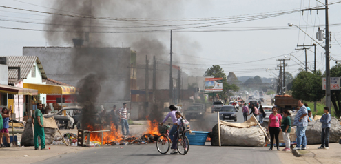 Durante o protesto, todo o lixo orgânico acumulado ao longo das duas últimas semanas foi colocado no meio da avenida, que é uma das mais movimentadas. Em seguida, os manifestantes atearam fogo em pneus e pedaços de madeira. Alguns motoristas que passavam pelo local se arriscaram em ultrapassar a barreira, inclusive um veículo do governo estadual.