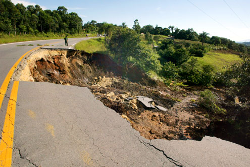 Uma nova interrupção causada pelas fortes chuvas atingiu dessa vez a BR-476 (Estrada da Ribeira), que afundou ontem entre os quilômetros 107 e 108, no município de Colombo, na Região Metropolitana de Curitiba.