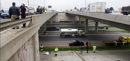 A bicicleta foi prensada no guard rail e arrastada por quase seis metros. Erivaldo se desequilibrou e desabou de uma altura de mais de oito metros. Ele caiu de cabeça no arrimo do viaduto, uma área concretada que fica ao lado do acostamento do Contorno Sul, no espaço entre as duas pistas da Linha Verde.
