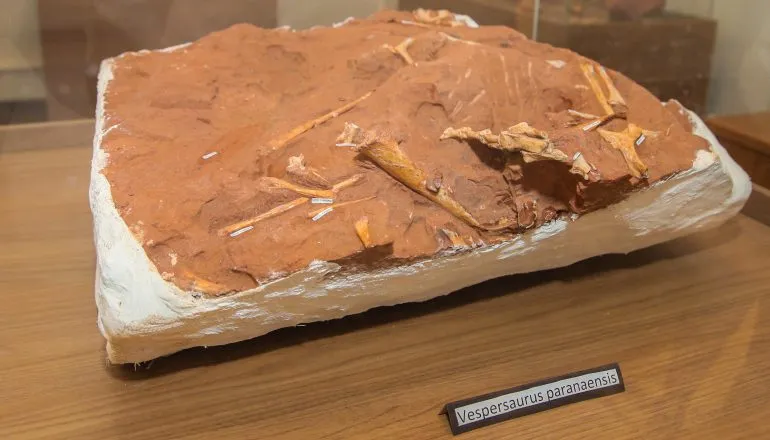 Diferente de Uberaba, famosa pelos gigantes Titanossauros, Cruzeiro do Oeste revelou uma variedade de répteis do período Cretáceo que viveram no antigo Deserto Caiuá. A região ganhou destaque com o Vespersaurus paranaensis, o primeiro dinossauro identificado no Paraná. Pequeno predador de até 1,5 metro, ele caminhava apoiado em um único dedo. O Deserto do Caiuá tornou-se um tesouro fossilizado: um cemitério de répteis voadores.