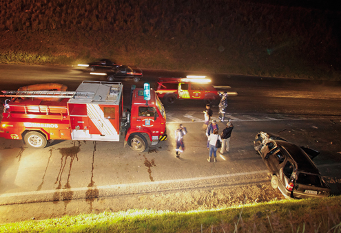 O motorista do caminhão, Donizeti Santos, 30, não se feriu. Ele contou que seguia sentido Curitiba, quando o automóvel tentou fazer o retorno. “O carro entrou na pista e eu consegui tirar um pouco, senão batia na porta dele”, disse.
