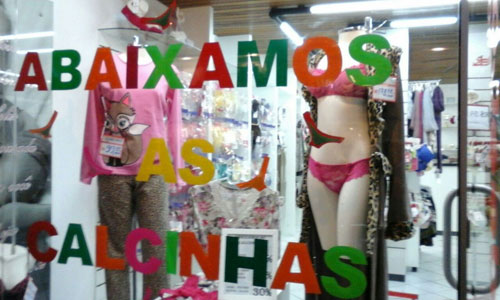 A promoção está na vitrine da loja: “Abaixamos as calcinhas”. Certamente muitas pessoas vão aparecer interessadas no anúncio.