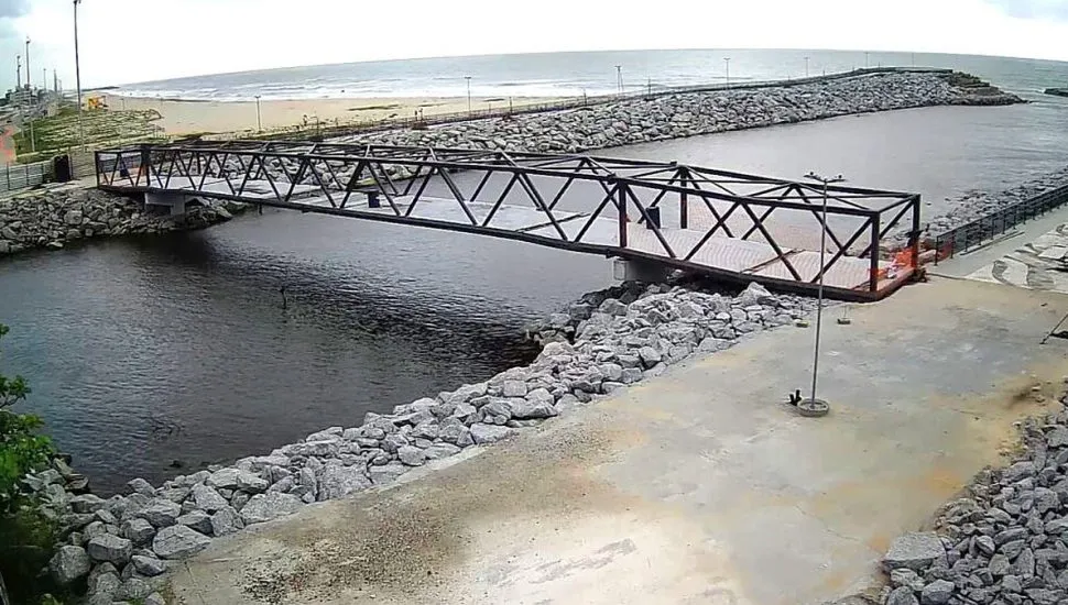 Uma das obras que integram a revitalização da orla de Matinhos, no litoral do Paraná, apresentou problemas de execução e terá que passar por readequações. Parte de uma das bases da passarela metálica de 60 metros instalada sobre o rio Matinhos deformou, e a finalização da estrutura teve que ser interrompida momentaneamente. De acordo com o Instituto Água e Terra (IAT), que fiscaliza a obra, o local está isolado e não oferece riscos à população.