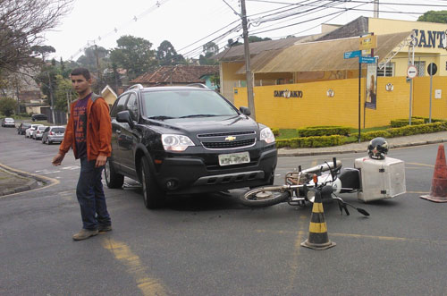 A curiosidade de duas pessoas por um atropelamento causou outro acidente no cruzamento das ruas Francisco Rocha e Frederico Cantarelli, no Bigorrilho, na manhã desta sexta-feira (05). A motorista de uma caminhonete Captiva bateu em uma moto ao parar para ver o motorista que atendia o idoso que havia acabado de atropelar.