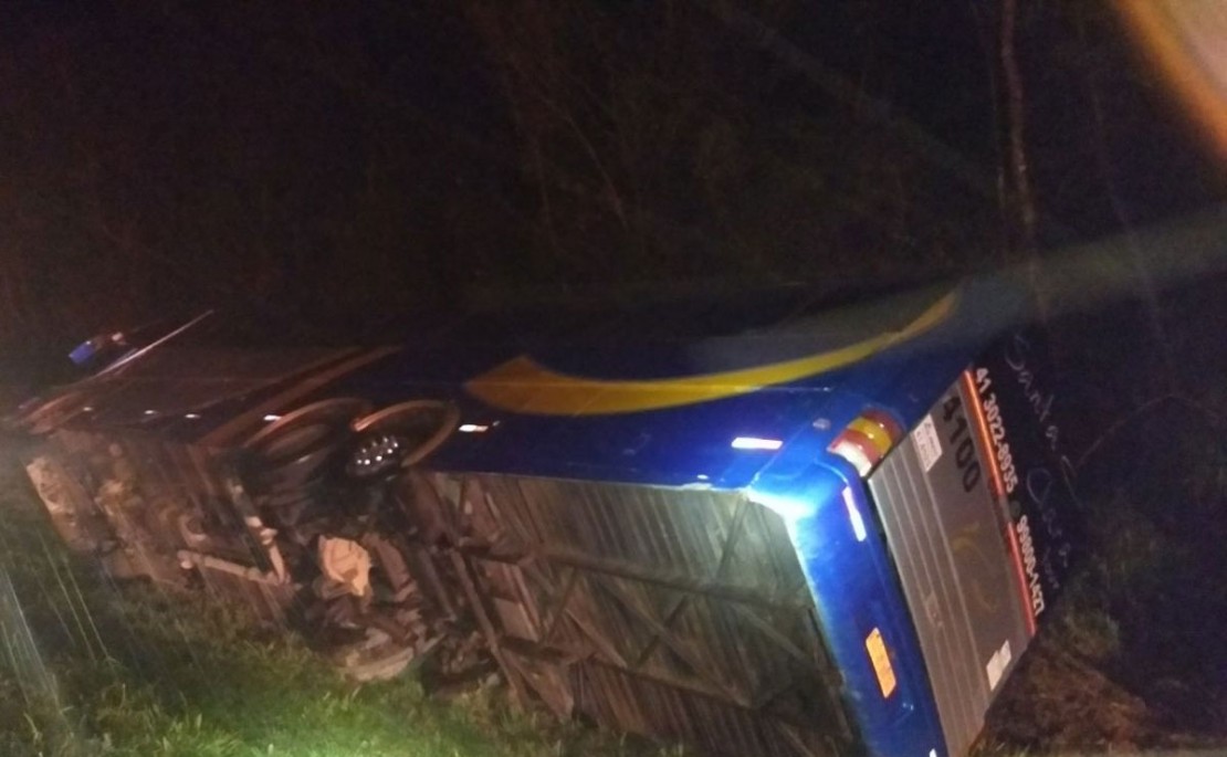 Um ônibus de turismo que vinha do Paraguai tombou na madrugada desta quinta-feira (3) na BR-277 em Palmeira, nos Campos Gerais. Dois passageiros morreram na hora. Segundo a Polícia Rodoviária Federal (PRF), chovia no momento.