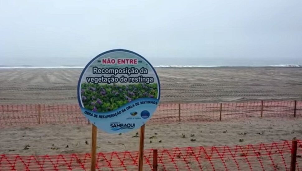 Já foi iniciado também o serviço de recuperação da restinga, vegetação que ajuda a conservar a biodiversidade local. No Pico de Matinhos segue em ritmo avançada a construção do primeiro espigão, estrutura de rochas que vai avançar no mar para ajudar a manter o novo formato da orla de Matinhos.