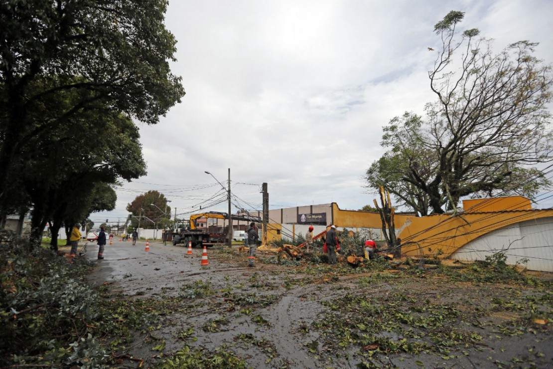 Em Curitiba, são 6 mil domicílio sem luz. A previsão é que a situação seja normalizada até o fim do dia. Parte da rede elétrica de algumas cidades paranaenses foram destruídas por conta dos ventos fortes e da queda de árvores.