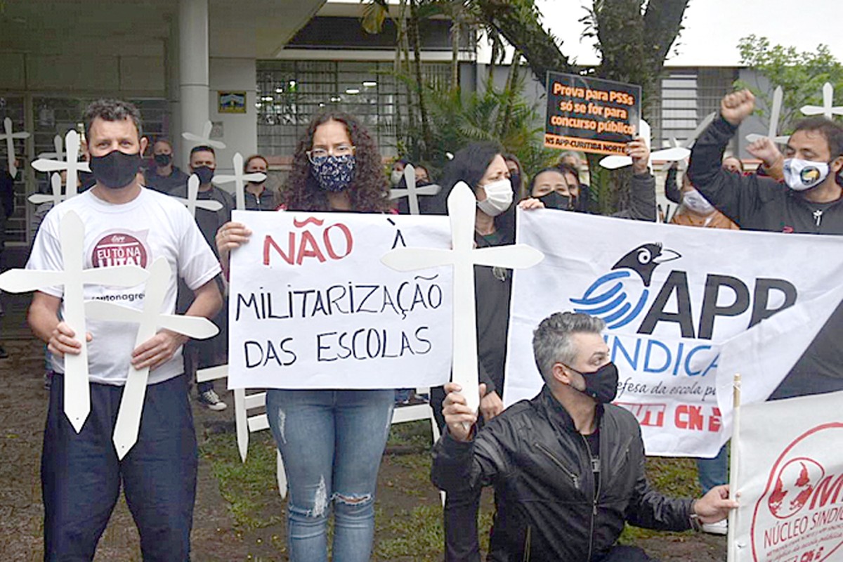 >> Escolas cívico-militares: sindicato de professores protesta antes de consulta pública no Paraná