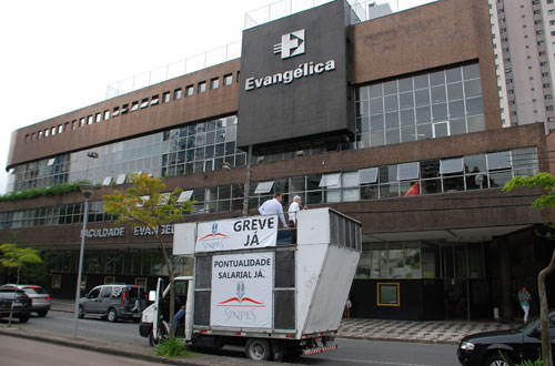 Nesta quarta-feira (12) os professores da Faculdade Evangélica do Paraná paralisam as suas atividades. O motivo desta paralisação é que os docentes não receberam integralmente o salário de outubro. Havia a promessa de que eles recebessem todo o salário no quinto dia útil de novembro, o que não aconteceu.