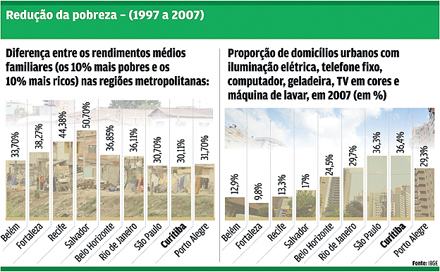 A Região Metropolitana de Curitiba (RMC) apresenta a menor desigualdade em relação aos rendimentos médios da população, quando comparada com as outras nove regiões metropolitanas do País (veja quadro). A constatação está na Síntese de Indicadores Sociais 2008, divulgada ontem pelo Instituto Brasileiro de Geografia e Estatística (IBGE).