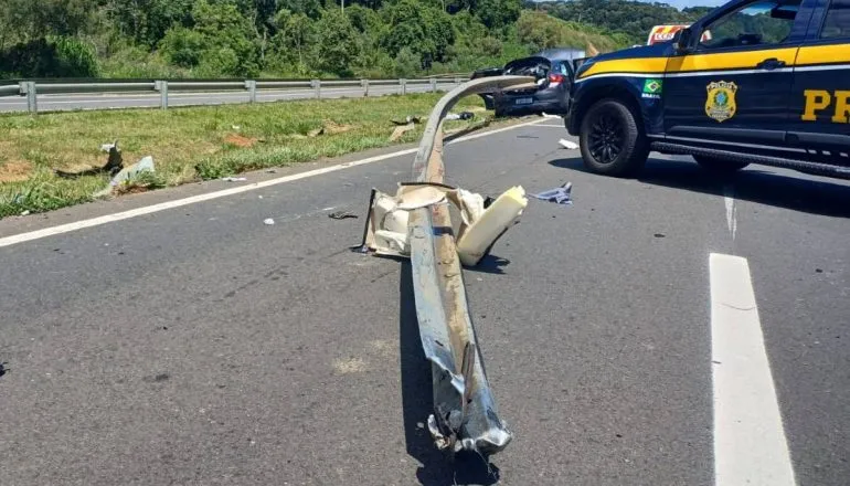 De acordo com a Polícia Rodoviária Federal (PRF), o carro em que a família estava saiu da pista e colidiu com o guard-rail na lateral esquerda da rodovia. Com a força do impacto, a estrutura metálica atravessou o veículo e saiu pela região do porta-malas.