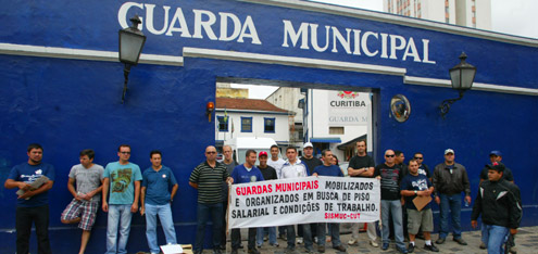 Os guardas municipais de Curitiba reivindicam melhores condições de trabalho e valorização salarial. Por isso, os profissionais se reuniram nesta segunda-feira, em frente à sede da Guarda Municipal, com faixas e panfletos entregues à população com informações sobre a situação enfrentada por eles.