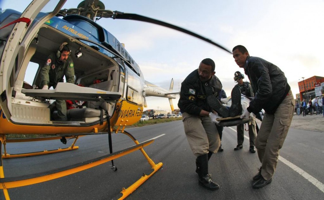 O helicóptero da PRF é utilizado principalmente em situações em que as vítimas precisam ser rapidamente removidas do local ou em que o congestionamento impede que o transporte seja feito por via terrestre.