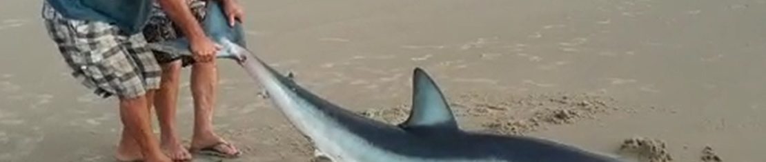 Homens que arrastaram tubarão no Litoral podem responder por crime ambiental