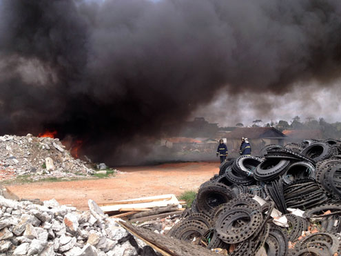 Segundo o Corpo de Bombeiros, o local tem muitos pneus, o que alimenta ainda mais o fogo. Populares disseram que o incêndio teria começado por funcionários, ou o proprietário do terreno. Alguns moradores da região passaram mal por conta da fumaça tóxica que vem da queima dos pneus.