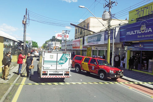 Um trabalhador morreu vítima de choque elétrico e outro ficou ferido na instalação do painel da fachada de uma loja de utilidades domésticas. O acidente ocorreu no início da tarde de ontem, na Avenida Marechal Floriano Peixoto, perto do terminal do Hauer.