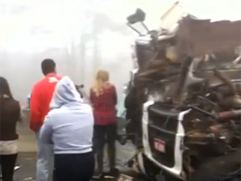 Tudo começou com uma colisão entre dois veículos no quilômetro 135 da rodovia. Como a visibilidade no trecho estava prejudicada, outros veículos que vinham logo atrás foram se envolvendo no engavetamento.