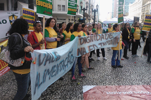 Segundo Patrícia de Souza Lima, diretora do Sindicato dos Servidores Públicos de Curitiba (Sismuc), a entidade está presente no ato para lutar “por maior qualidade no ensino”. De acordo com Lima, a legislação pede que em cada turma de 30 anos, com idade entre 0 e 5 anos, existam três educadores, mas, na rede municipal, existe apenas uma.