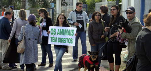 A ONG Onca e um grupo independente de proteção aos animais fizeram uma manifestação nesta quarta-feira (2), em Curitiba, contra a comercialização de bichos.