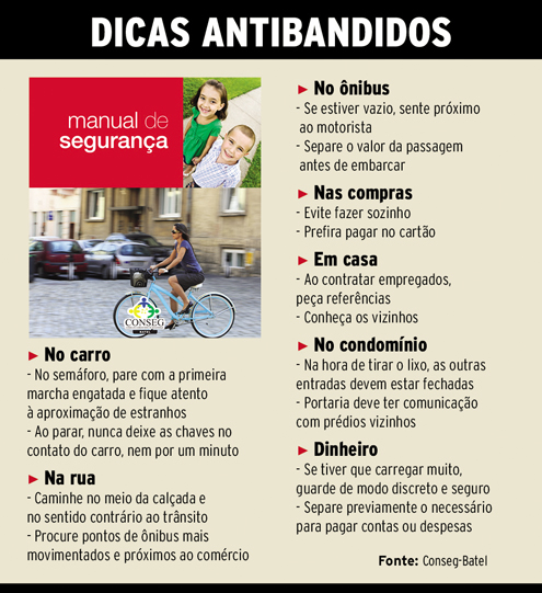 Manual de segurança, com dicas que podem prevenir a ação de bandidos, foi lançado ontem pelo Conselho Comunitário de Segurança (Conseg) do Batel. Feito com base nas principais ocorrências registradas no bairro, o livreto tem 25 mil exemplares editados e será distribuído em toda a Região Metropolitana de Curitiba.