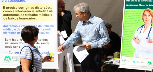 Em Curitiba, na Boca Maldita, o Sindicato dos Médicos do Paraná (Simepar) entregou panfletos à população para explicar a reivindicação da classe médica. “Este é o último aviso da categoria, que está perdendo a paciência”, afirma Murilo Schaefer, vice-presidente do sindicato.
