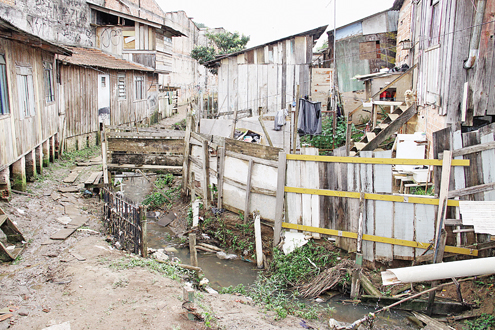 Na semana passada, com as fortes chuvas, a água invadiu parte das casas da vila, que possui vias e vielas de terra. Tudo virou barro, que parou nos bueiros na entrada do local, alagando também o acesso às casas, pela Rua Anton Tchekow. Há uma depressão na rua, ajudando ainda mais a acumular a água. “A água para aqui e a gente precisa atravessar deste jeito para chegar em casa. Também tem terra que para aqui porque nada é asfaltado”, conta Rafaela Portes Fernandes, moradora da vila há 18 anos.
