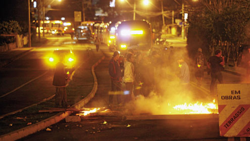 Moradores da Vila Bom Menino, no Mossunguê, fecharam as canaletas do ônibus e a Rua Ivo Zanlorenzi para cobrar da Cohab a entrega de casas prometidas pela prefeitura.