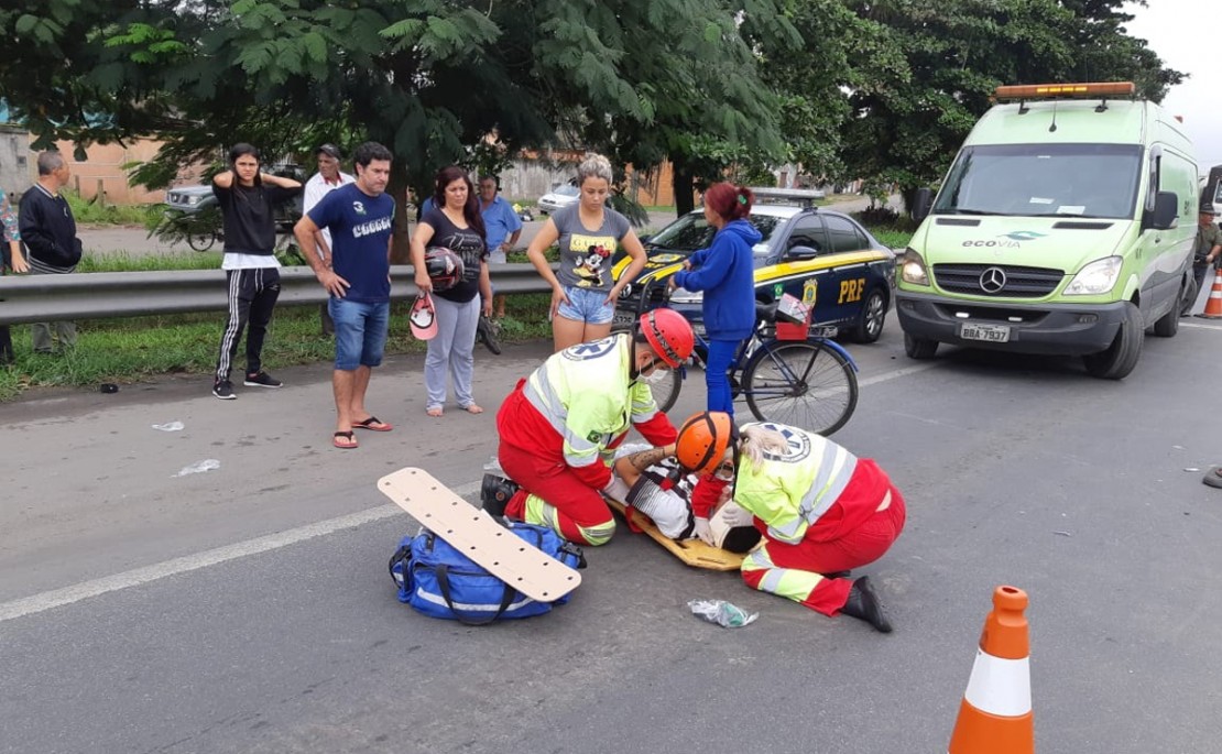 Dois motociclistas ficaram feridos após uma colisão frontal entre motocicletas, no quilômetro 0 da BR-277, em Paranaguá, no litoral do Paraná, na manhã desta segunda-feira (13).