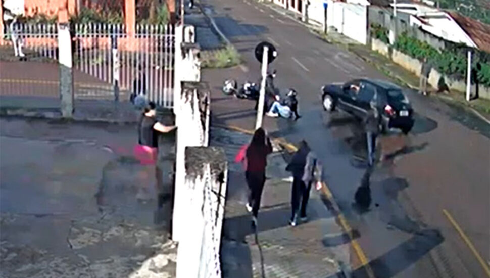 Inicialmente o motorista do carro até desceu do carro, mas em seguida retornou ao veículo e fugiu sem prestar socorro.
