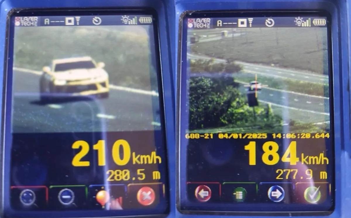 Um Chevrolet Camaro foi pego trafegando a 210 km/h na BR-476, em Cascavel, no oeste do Paraná, durante operação da Polícia Rodoviária Federal (PRF). No trecho, a velocidade máxima permitida é de 110 km/h. Ou seja, o motorista dirigia a uma velocidade superior a 90% do que é liberado na rodovia.